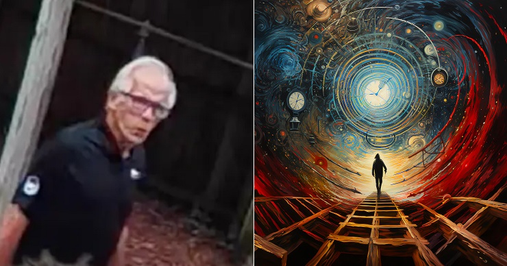 間違いなく小屋に入ったはずの男が消えただけでも奇妙な出来事だが、その翌日に監視カメラが捉えた映像によって事態はさらに混迷を極めることになる。というのも、行方をくらましたはずの男が、白髪姿になって小屋から悠然と出てきたのだ。前日と比べて足取りは重く、頬の肉が落ちて痩せたようにも見える。また、背負っていたはずのリュックサックを所持しておらず、服装も黒のTシャツ・Gパンというスタイルに。ただ、眼鏡をかけていて、前日に捉えられた男の面影が残っていることから、2人は同一人物のように見えるのだ。