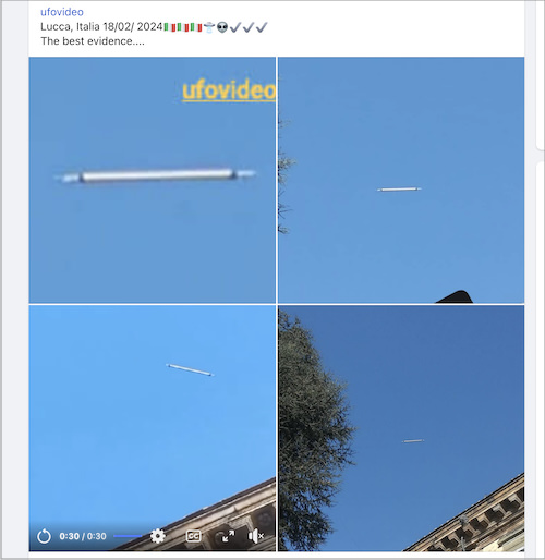 また今年2月には、トスカーナ州ルッカ上空に蛍光灯に似た棒状のUFOが白昼堂々と出現。こちらはしっかり映像に記録されており、青空で静止しているように見えるUFOの姿を確認できる。機体が鮮明に映り込んでいる一方、同地に飛来した経緯や上空で静止できる原理など残された謎は多い。いずれにしても、イタリアで興味深いUFO出現事例が多数報告されているのは事実なのだ。