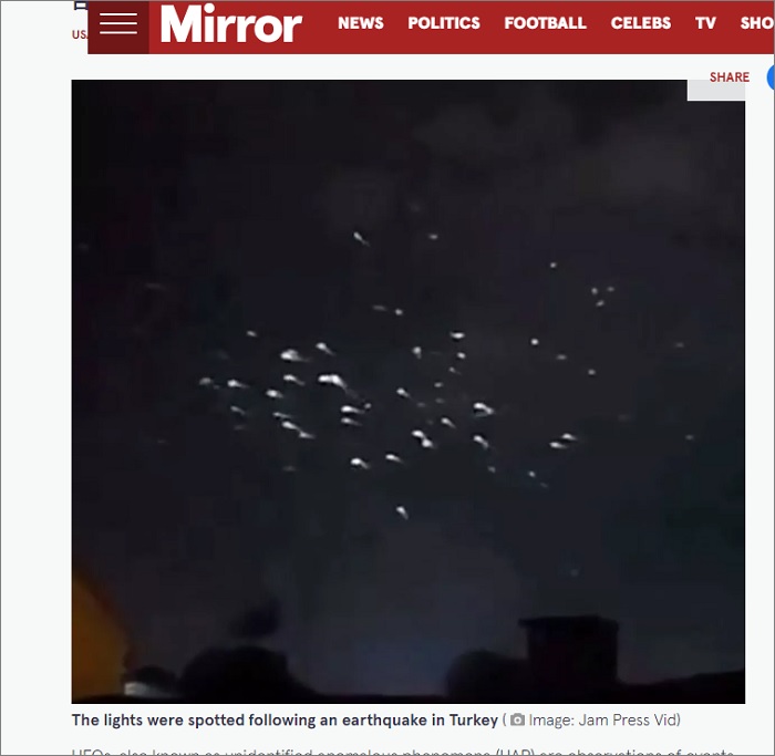 トルコは日本と同様に地震が多い国として知られるが、今回さらに住民を驚かせたのが、地震発生後に姿を見せたいくつもの発光物体だった。実際、当時の状況を捉えた映像が5月に入ってから各種SNSを通じて公開され、(昨年「異星人のミイラ」を公開したことで世界中の大きな注目を集めた)メキシコの超常現象ジャーナリスト、ハイメ・マウサン氏の目に留まったことで一気に拡散した。