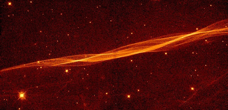 プロトン化水素分子はプラス1の電荷になるので、磁場によるローレンツ力が一方向に働いて、全体がきれいにまとめられるのだ。プロトン化水素分子は、希薄な状態では安定しているが、恒星に吸い込まれると陽子と電子に分かれる。