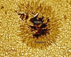 粒状班がなくなって、下が見えている部分が黒点だが、温度は3000度Kしかない。