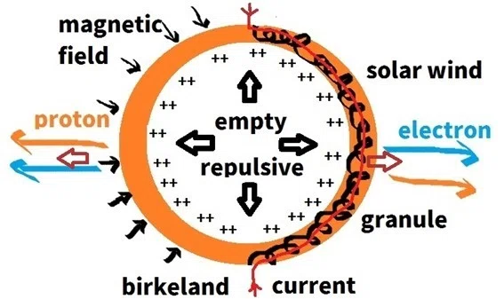 つまり、最初に磁場による圧縮が行われると、プロトン化水素分子がプラスの電荷として動くために、集中すると内部が空洞になる。プラスの反発力が働くからだ。この仕組みによれば、太陽だけでなく、夜空に輝くすべての恒星は空洞であることになる。