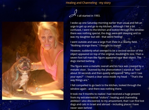 翌日、彼女が裏庭を確認すると、直径7メートルほどの着陸痕と思しきミステリーサークルが見つかった。さらに翌月、UFOは彼女の前に再び現れると、大量の金属片と謎の赤い液体を残して去った。これらはテルアビブの大学で分析され、液体からは多量のカドミウムが検出された。彼女はこの体験から数か月後、チャネリングとヒーラーとしての能力に目覚めたという。
