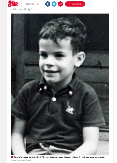 英紙「DAILY STAR」 をはじめとする複数の海外メディアの報道によれば、謎の失踪事件で最も知られているのは、1969年6月に発生したデニス・マーティンくんのケースだという。6歳のマーティンくんは家族とともにキャンプ中、父親を驚かせようと茂みの後ろに隠れた直後に姿を消してしまった。