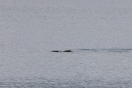 最初は鮭などの魚だろうかと思ったが、魚は通常、水面からジャンプして再び水中に戻る。だがこの動きは、継続的に湖面スレスレをうねり進んでいるように見えた。夫はじゃれ合う2匹のカワウソじゃないかと言った。だが、カワウソのような哺乳類は、呼吸をするために何度か水面に顔を出す。しかし顔らしきものは見えなかった。