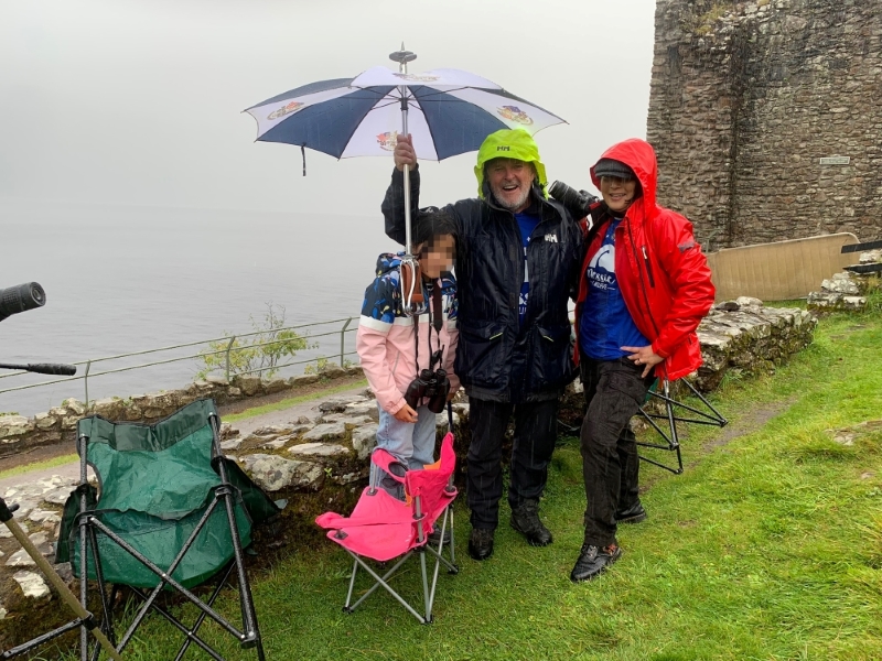 大捜索初日の8月26日土曜日、筆者一家はネス湖畔の古城アーカート城の敷地内に陣取り、湖面観察に従事した。その日はあいにくの悪天候。防水加工のジャケットを着用し、大きなゴルフ傘を差していたが、湖面観察を始めてから30分後には3人ともずぶ濡れになっていた。それでも思い出に残る愉快な体験だったと言える。