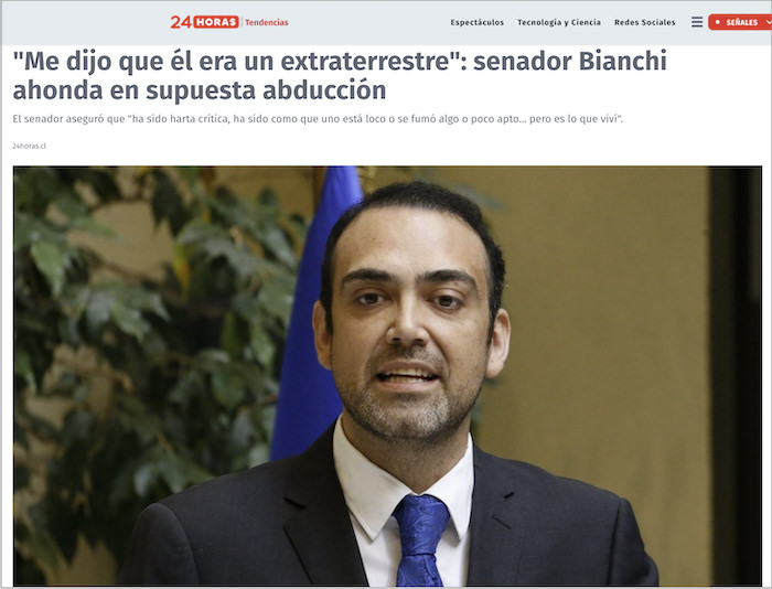 南米の政治家による超常現象報告といえば、5月にチリのカリム・ビアンキ上院議員が衝撃的な体験を告白して話題を呼んだばかり。