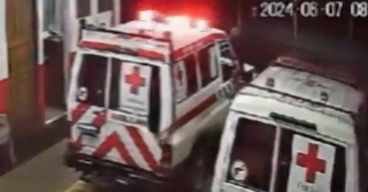 En el video se ve a una sombra pasar cerca de las ambulancias posterior a que la sirena se activara sola. pic.twitter.com/skXt5CHf8P