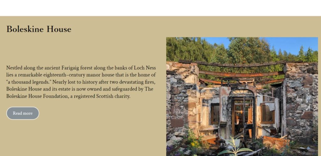 2015年に火災で大部分が焼け落ちたのだが、2019年にイングランド人のエソテリストの夫妻が買い取り、現在、彼らが立ち上げたボレスキン・ハウス財団の管理下で修復工事が進められている。