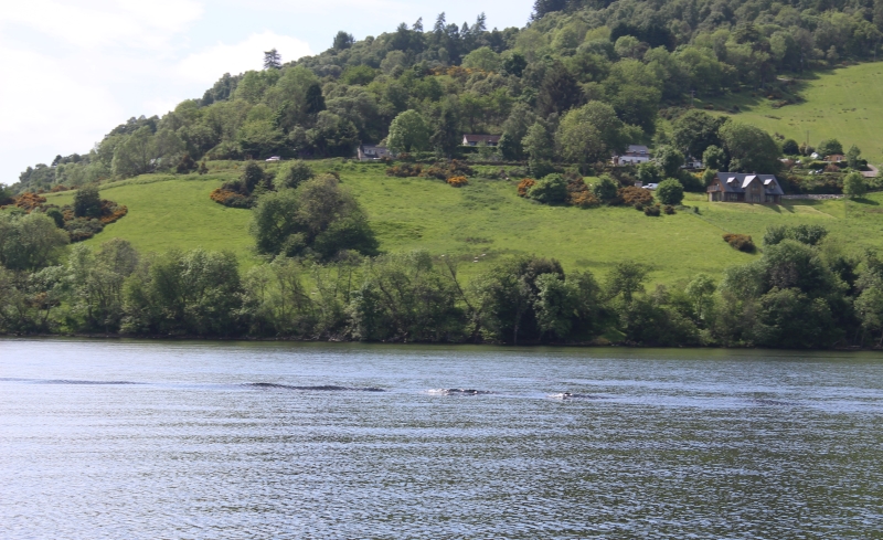 ネス湖では、ボートが通り過ぎてかなりの時間が経っても、航跡波が延々と湖面を移動する。そしてボートの存在に気付かなかった人がそれを遠くから見て、「大蛇の背のような複数のコブを目撃した」と報告するケースが頻繁にある。筆者もこのクルーズでそれを実際に体験した。それが下の写真である。