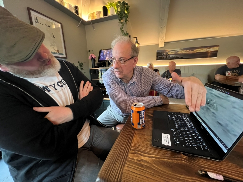 「ザ・クエスト24」期間中の6月1日土曜日、筆者と夫はネス湖センターが運営するソナー搭載ボートに乗船し、マッケナ氏と水中聴音器でネス湖深部の音を聴くクルーズに参加することになっていたが、その前夜、筆者はマッケナ氏に71枚のオリジナル画像を見せるべく、ネス湖西岸にあるドラムナドロキット村へ向かった。