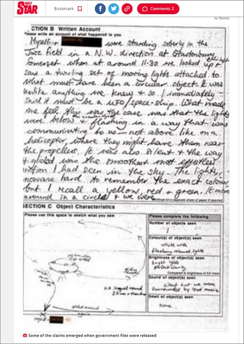 グラストンベリー・フェスティバルの歴史は古く、第1回が開催されたのは1970年のこと。以後、回を重ねるごとに規模を拡大し、数多くのミュージシャンが伝説的ステージを披露。今や「英国文化の象徴」と言われるほどの由緒あるフェスティバルへと成長したが、その参加者がUFOを最初に目撃したのは1994年のこと。これまで非公開だった英政府のUFOファイルが2009年に公開され、これまで隠されていた詳細が明らかになった。