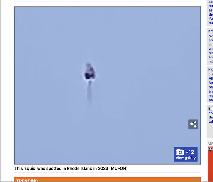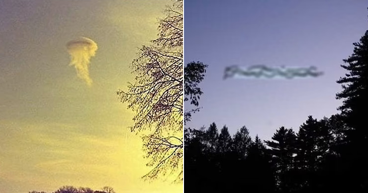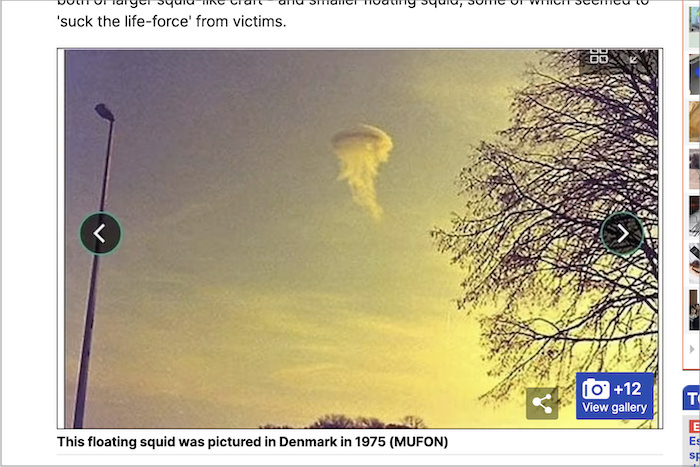 まず最初に明かされたUFOは、イカのような形状が最大の特徴だ。1975年にデンマーク、2023年に米ロードアイランド州で目撃された際の写真も公開されており、空に浮かんだ本体から触手らしきものが伸びていることがわかる。同様の事例はこれまでに数十件寄せられ、一部の小型タイプに至っては人間に接近して「生命力を吸い取る」ような動きを見せたケースまで報告されているという。