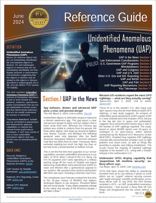 国家安全保障上の脅威に対する関心の高まりか──。アメリカの「主要都市警察署長協会(MCCA)」がUFOおよびUAPに関する公式ハンドブックを発行した!