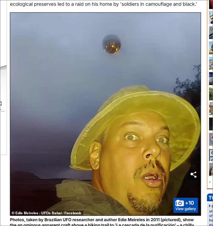 ブラジルのUFO研究家で、作家としても活動中のエディ・メイレレス氏。同氏が2011年に撮影したという奇怪なセルフィーショットに、SNS上では大きな議論が巻き起こっている。なんと、メイレレス氏の背後に謎の飛行物体がはっきりと映り込んでおり、「UFOと自撮りした史上初の写真」かもしれないというのだ。