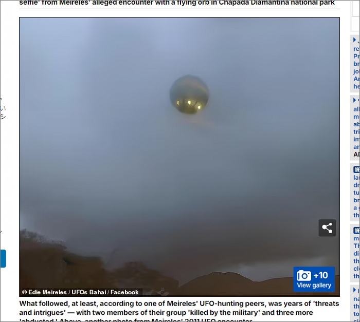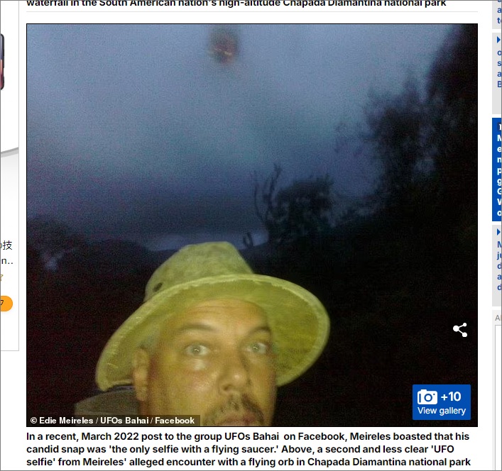 英紙「Daily Mail」が報じたところによると、UFOが出現した場所はブラジルにあるシャパダ・ディアマンティーナ国立公園の上空だ。球状の機体に、黄色く明るい光源を備え、驚いた表情を見せるメイレレス氏と比較してみても、それほど高度はないように見える。