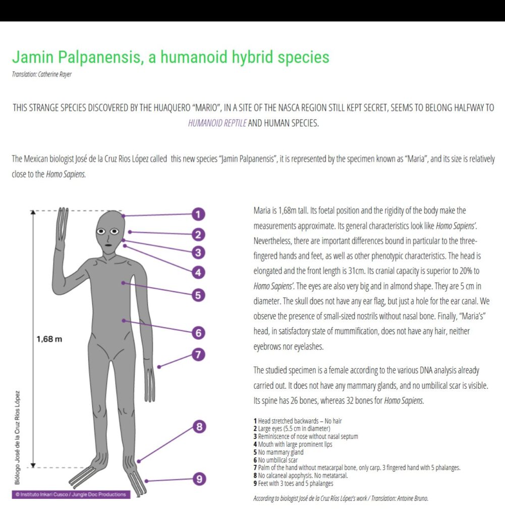 じつは、ナスカの宇宙人ミイラの存在を最初に公表したのは、フランスの探検家ティエリー・ジャミンである。彼のサイト「エイリアン・プロジェクト」によれば、こうしたミイラのほとんどは、マリオなる人物が、ナスカからその北方パルパにかけての地域で発見したということだが、発見の詳しい状況も発見場所も不明なままであり、マリオという人物の正体も明らかにされていない。