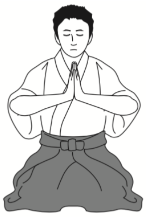 ①畳や床に正座し、背筋を伸ばし、両手を下腹近くの膝の上にのせ、目を閉じる。