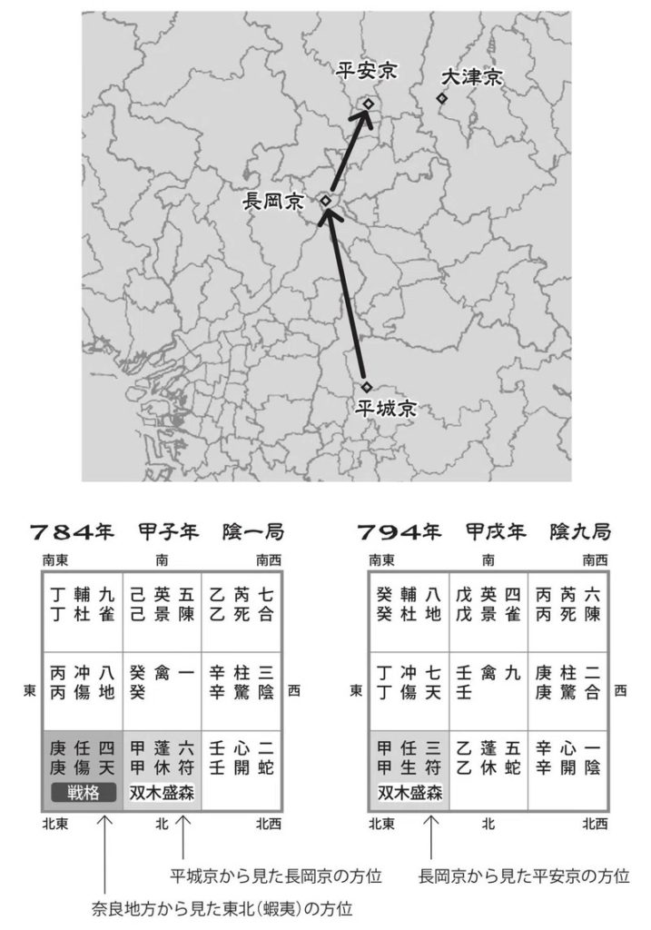 784年、桓武天皇は都を平城京から長岡京に遷した。ところが、それからわずか10年後の794年に平安京遷都を断行したのである。いったいなぜ短い間に2度も遷都をしなければならなかったのか? これを奇門遁甲で解くと、ピタリと回答が導きだされるのだ。すなわち長岡京への遷都は、一種の方違えだったのだ、と。