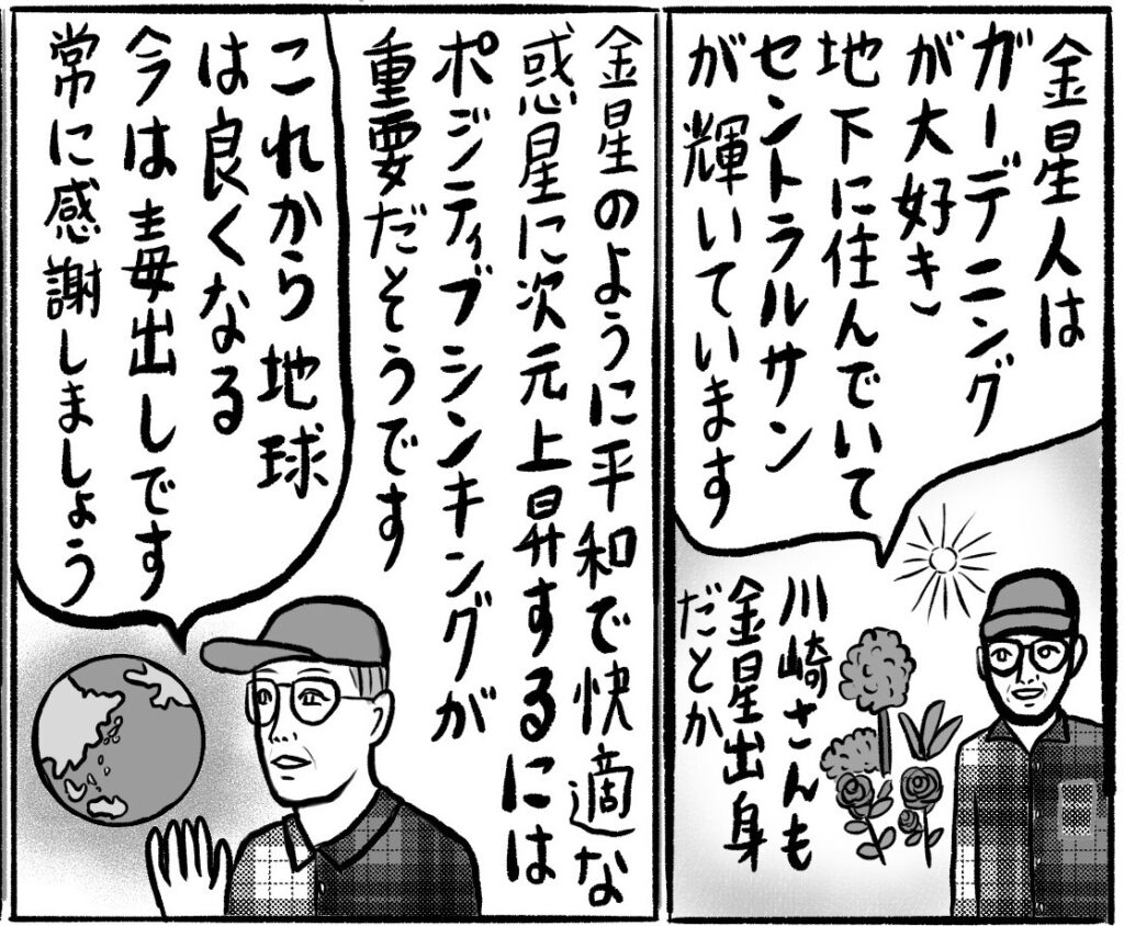 と、川崎さん。ネガティブな未来を信じていると、その方向に引きずられてしまうので、ポジティブな思いで日々を過ごすことが大切だとか。