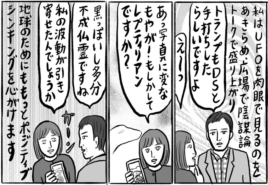 先日、清里で開催された「UFOを呼ぶ会」に参加しました。銀座にあるスピリチュアルショップ「アルケミスト」の店長、山崎偉晶さんが主催で、会場となったカフェには数十人集まり、熱気が渦巻いていました。