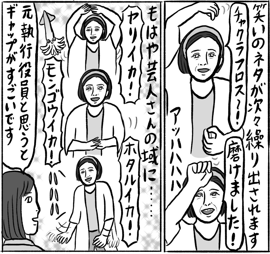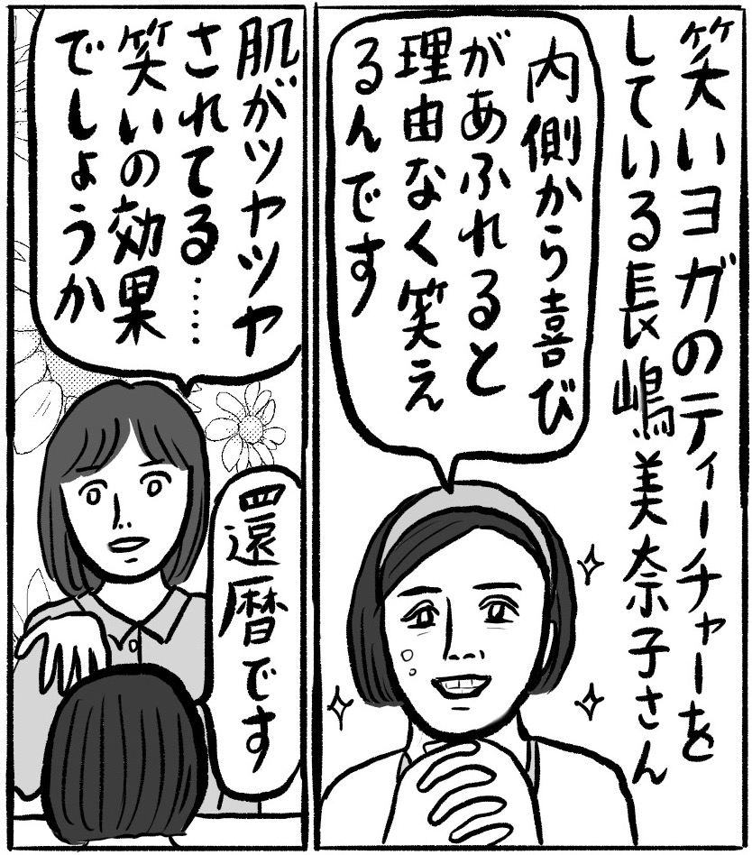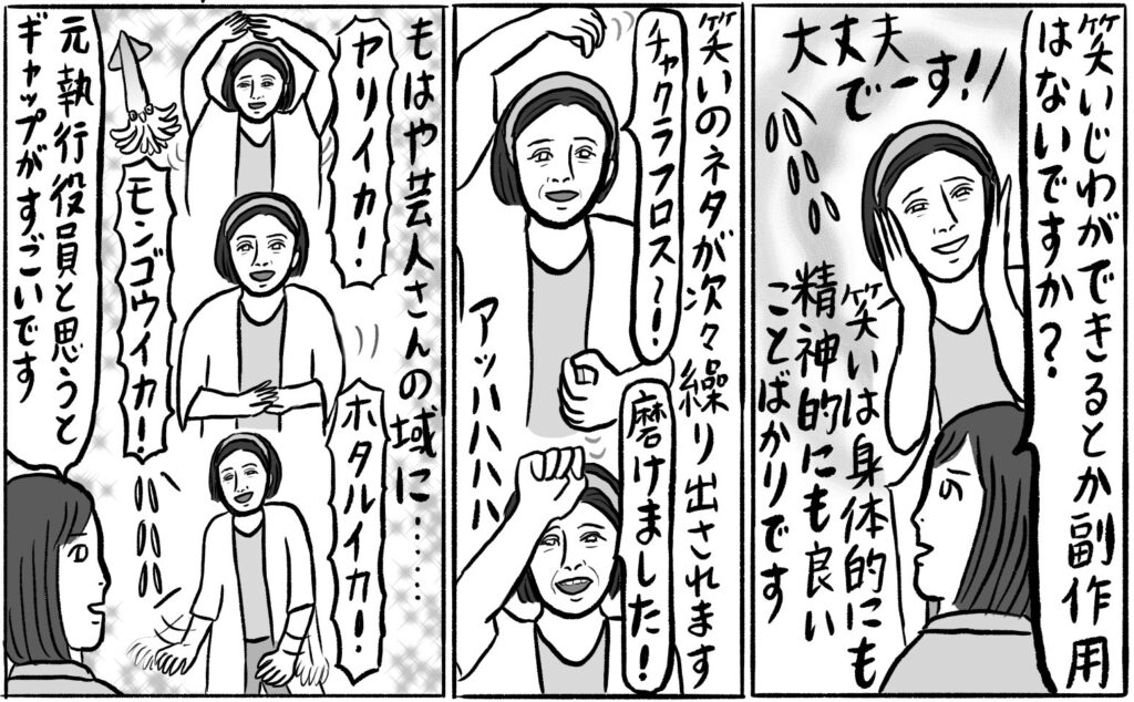 と、長嶋さん。明るい笑顔が自然と出ていて、まわりの空気が軽くなります。一方で、笑いヨガを家でやっていたら、同居している家族がいる場合は怪訝な目で見られそうですが……。