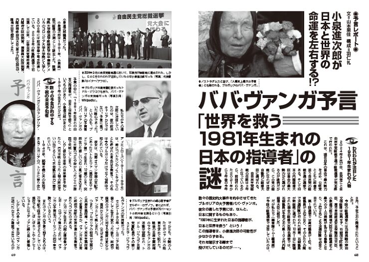 というのも、ブルガリアの予言者ババ・ヴァンガの予言の中に、「1981年生まれの日本の指導者が、日本と世界を救う」というものがあり、小泉進次郎がまさに1981年の生まれだからだ。